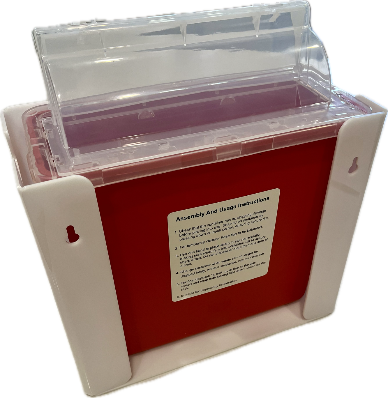 Includes a red biohazard sticker along with screws and anchors to secure the bioBox to the wall. Easy install.