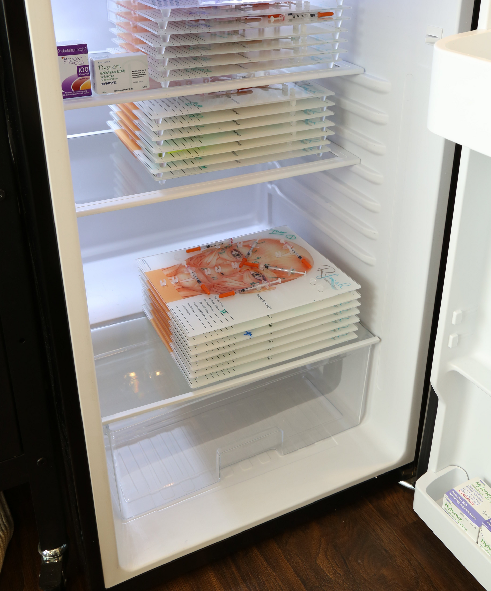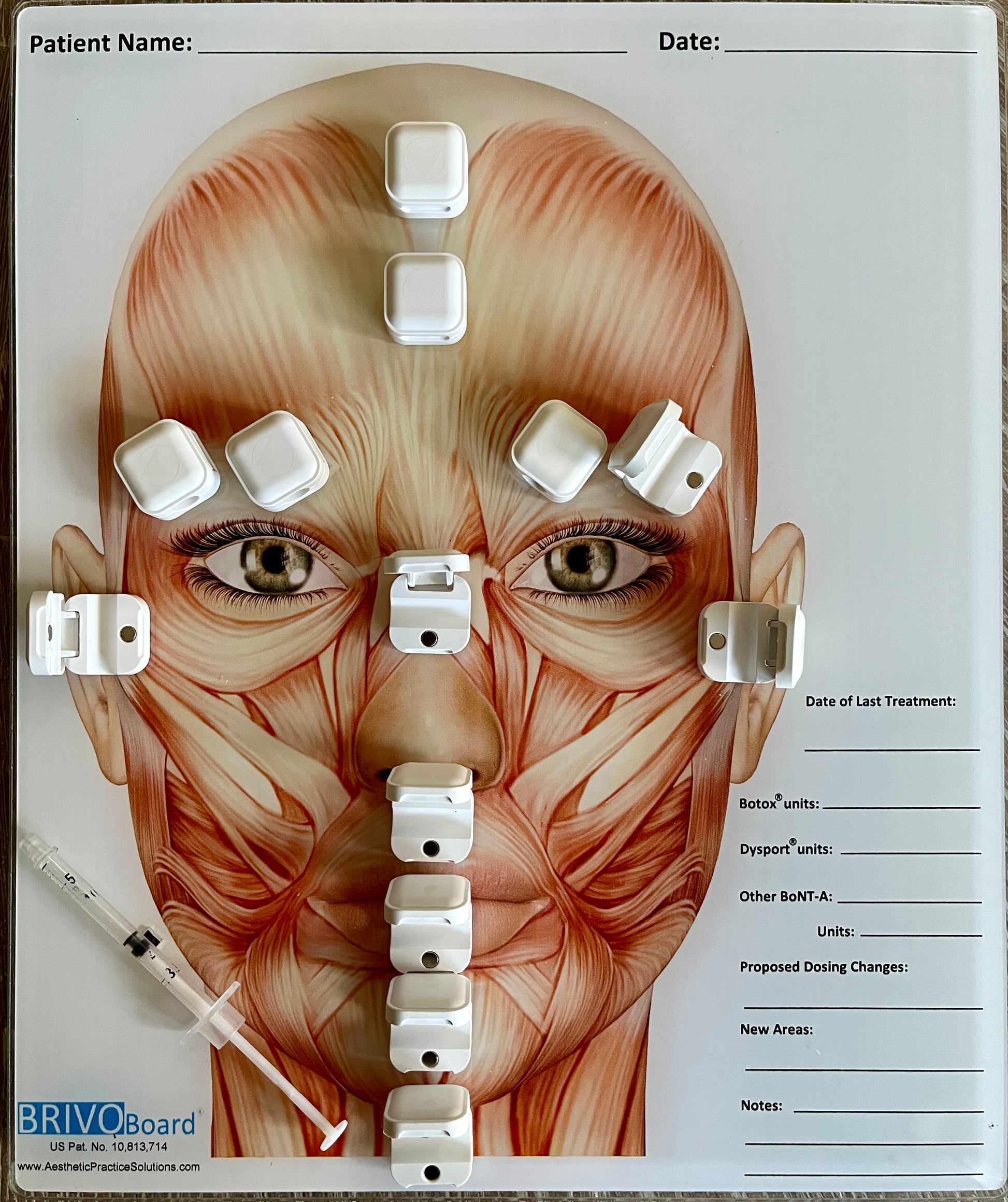 Streamline your neurotoxin treatments with BRIVO Boards. These patented boards securely organize your patients’ treatments by holding up to 13 syringes with a new magnetic clasp to securely hold the syringe. The clips hold .3mL and 1mL syringes.